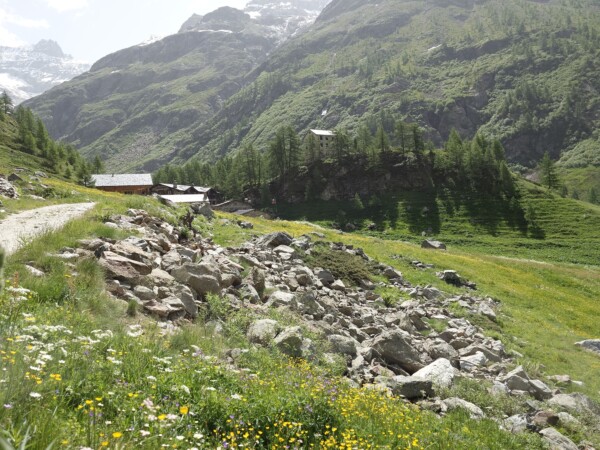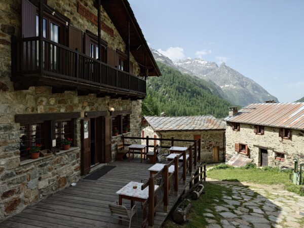 Diese für das Valpelline typische Suppe wird auch auf der Alpe Rebelle serviert. Unsere Unterkunft liegt fast am Ende des Tals und ist in der typischen Architektur erbaut. Das vom Ehepaar Ilenia und Daniele geführte Haus ist vor allem bei aktiven Gästen sehr beliebt. Nicht umsonst prangt das Bild eines Kletterers an der Hauswand, denn die Gastgeber sind erfahrene Alpinisten und ehemalige Hüttenwarte.