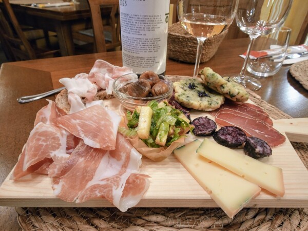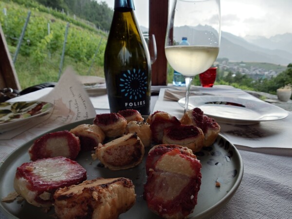 Das nahrhafte Gericht aus hartem Brot, Fontina-Käse, Butter und Wirsingbrühe probieren wir schliesslich mitten im Weinberg. In Begleitung von anderen Köstlichkeiten und feinen Tropfen von der örtlichen Winzergenossenschaft Cave Onze Communes.