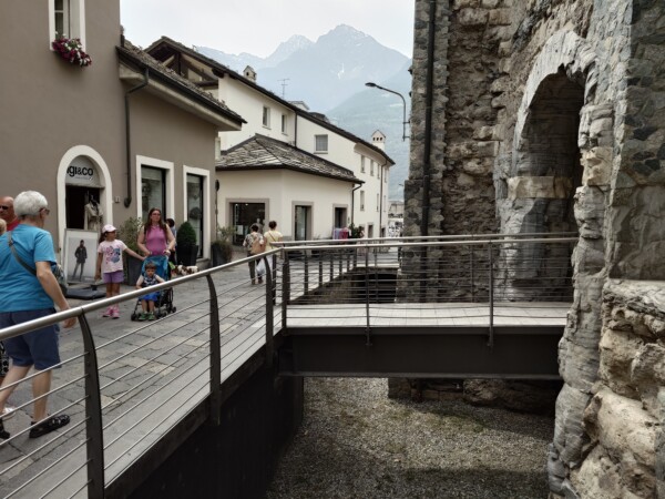 Restaurants und Geschäfte säumen die Via Sant’Anselmo, die zum doppelten Torbogen führt. Die Porta Pretoria war einst das Osttor der römischen Garnisonsstadt und ist sehr gut erhalten. Wie auch die Fassade des römischen Theaters.