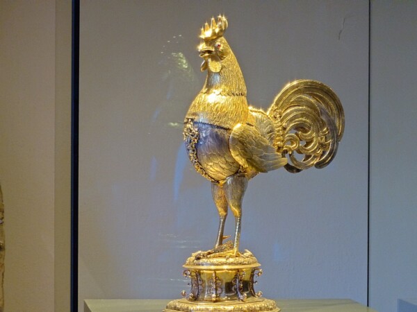 Goldener Hahn als Trinkgefäss im Friedenssaal im Rathaus von Münster.